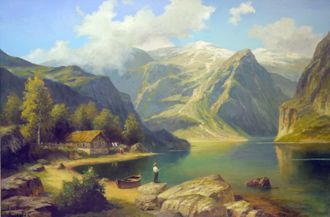 "На берегу горного озера" 80 см х 120 см холст/масло